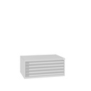 Cabinet made of 0.7 mm thick steel. Wing doors with hidden hinges. Door handles equipped with a lock mechanism securing the doors in two points. Shelves are adjustable every 25 mm, adapter to be used with hanging files. Cabinet with sliders placed in the bottom for easy rearrangement. Load capacity is 65 kg per shelf. Cabinets equipped with levelling feet mounted by the customer at the place of use. The cabinet (1,99 m high) has holes for fixing it with fixed elements (building wall, another product, etc.).